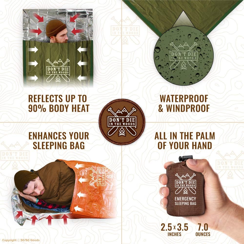 This survival bivy bag ensures warmth and protection with its thick Mylar material, making outdoor adventures safe and enjoyable.